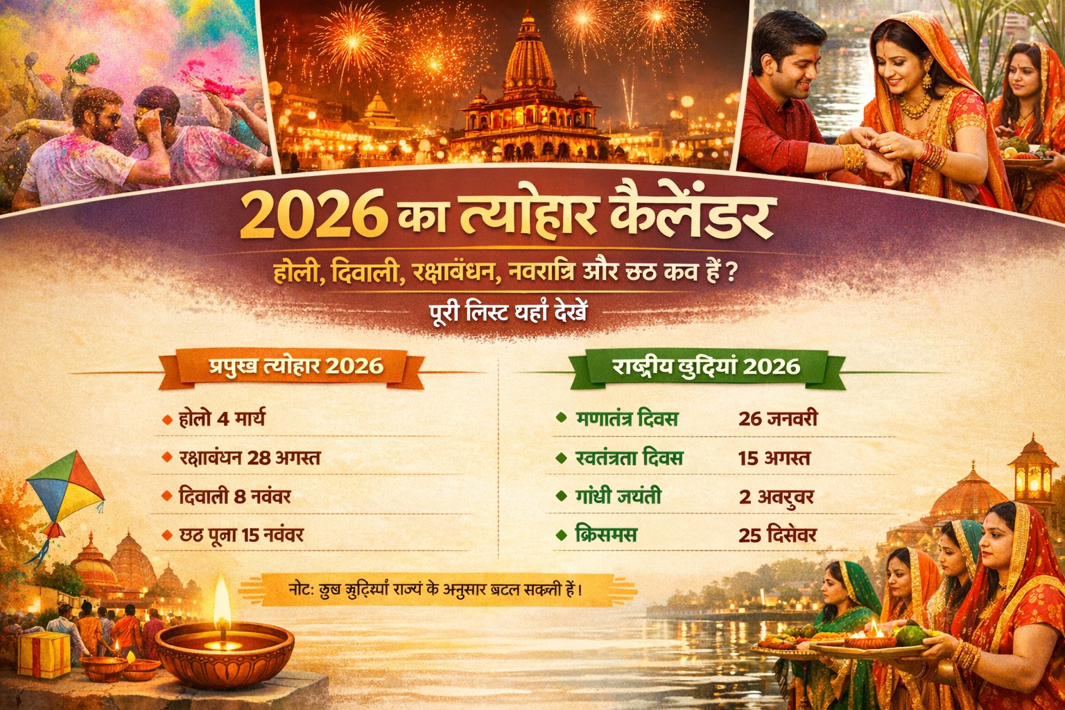 2026 की राष्ट्रीय और सार्वजनिक छुट्टियां