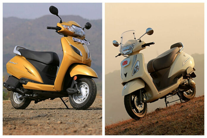 टीवीएस जुपिटर भी भारतीय बाजार में बिकने वाला शानदार स्कूटर है। इसका बेहतरीन लुक इसे फैमिली स्कूटर बनाता है। टीवीएस जुपिटर में 109.7cc, सिंगल-सिलेंडर, एयर-कूल्ड, फ्यूल-इंजेक्टेड इंजन मिलता है, जो 7.7 bhp का पावर उत्पन्न करता है। इसके साथ ही इसमें CVT गियरबॉक्स मिलता है। कीमत की बात करें तो टीवीएस जुपिटर की कीमत 72,190 रुपये से लेकर 88,498 रुपये के बीच है।