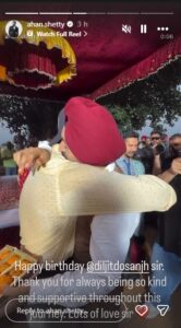 इस अवसर पर दिलजीत दोसांझ की तारीफ में बॉलीवुड के अन्य कलाकारों ने भी शुभकामनाएं साझा कीं। अहान के पिता और दिग्गज अभिनेता सुनील शेट्टी ने भी दिलजीत की एक तस्वीर की इंस्टाग्राम स्टोरी शेयर करते हुए उन्हें न सिर्फ एक शानदार कलाकार बल्कि एक अच्छे इंसान बताया।