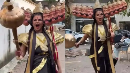 रावण के गेटअप में सड़कों दिखीं राखी सावंत