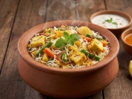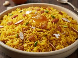 यह एक खुशबूदार पुलाओ है, जिसे घी, काजू, किशमिश और हल्दी‑केसर के साथ पकाया जाता है। इसका हल्का मीठा स्वाद और पीला रंग इसे त्योहार के मेनू में खास बनाता है।