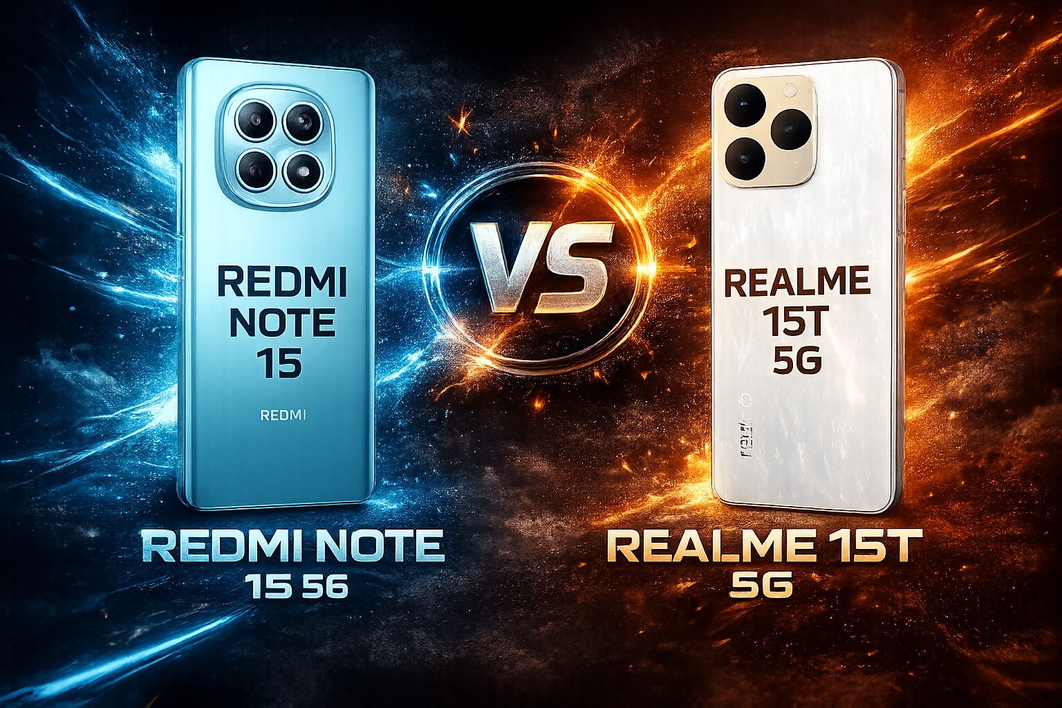 Redmi Note 15 5G में Snapdragon 6 Gen 3 प्रोसेसर मिलता है, जबकि Realme 15T 5G Dimensity 6400 Max चिपसेट पर चलता है।